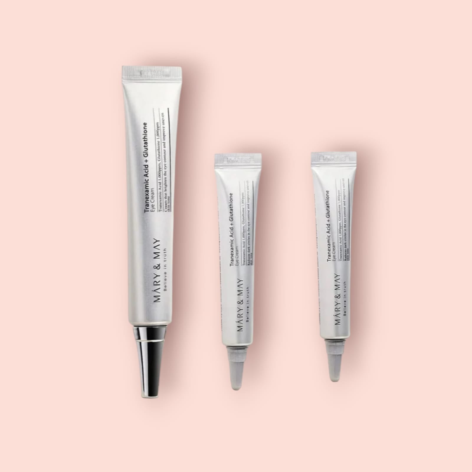مجموعة متميزة من ماري أند ماي الكورية، مصممة خصيصًا للعناية بمنطقة تحت العين، تحتوي على كريم بتركيبة فعّالة تجمع بين حمض الترانكساميك والغلوتاثيون لتفتيح الهالات السوداء، تقليل التصبغات، وتحسين مرونة البشرة. مثالية لمن يعانون من الإرهاق أو التصبغات حول العين.